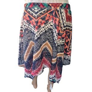 Vanity Colorful Boho Crochet Geometric A-Symmetrical Flowy Stretchy Skirt