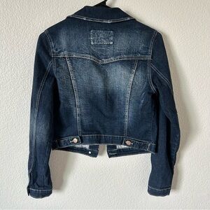Vanity Dark Blue Distressed Denim Cropped Button Up Small Jean Jacket for Women