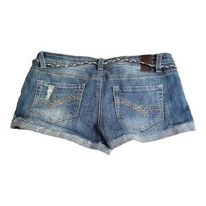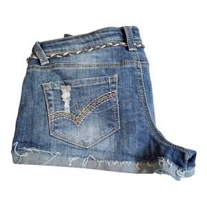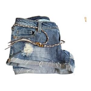 Vanity Distressed Denim JEAN SHORTS & BELT Womens 28 Raw Hem Blue Cotton Spandex