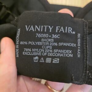 Vanity Fair Black Padded Underwire Back Smoothing Minimizer Bra Size 36C