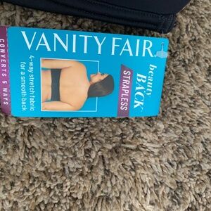 Vanity Fair Black Strapless Underwire Bra 36DDD Smooth Back Lightly Padded New