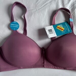 Vanity Fair bra, Body Caress, full coverage bra, wireless bra, wire free bra, comfort bra, convertible bra, crisscross straps, everyday bra, plum bra, purple bra, lavender bra, size 36C