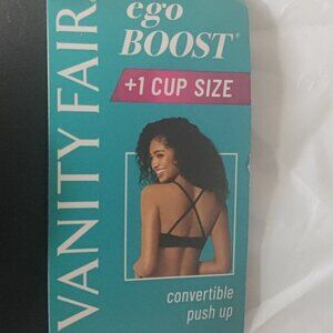 The Vanity Fair Ego Boost Add-A-Size Push Up Underwire Bra is the perfect versatile addition to your collection! Made with a push up pad that adds up to one full cup size to your bust. The cups are covered in ultra-soft fabric for a sleek and seamless look under clothes. Fully front adjusting shoulder straps ensure a comfortable fit. Ego Boost also features 2-way strap convertibility, regular or criss-cross, for wardrobe versatility.