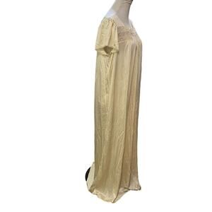 Vanity Fair Buttercup Yellow Long Nightgown Gown Lace Embroidery Nylon Large