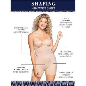 These Vanity Fair high-waist shaping shorts in size medium deliver seamless comfort with practical 360° smoothing and optimal shaping. Designed to suit a variety of outfits, they are ideal for everyday wear or special occasions when a smoother silhouette is desired. The durable mix of nylon and spandex provides stretchy support, while the cotton gusset lining ensures breathable, all-day comfort. Convenient features like flat seams and a silicone band prevent rolling or visible lines, making these shorts perfect for wearing under dresses, skirts, or fitted pants. Elevate your wardrobe essentials today with this confident, form-enhancing piece!