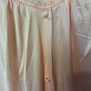 Charming light peach chemise set (robe and gown) with delicate lace accents. Features a button-down front. Ideal for cozy evenings. In really good pre-owned condition. Very feminine. No reasonable offer refused.