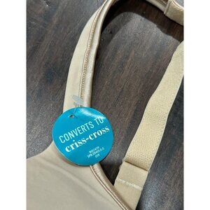 This Vanity Fair bra offers supportive fit, featuring convertible criss-cross straps for versatile wear. Crafted from a blend of nylon and spandex, it ensures comfort and flexibility. The neutral beige tone makes it a versatile addition to any wardrobe.