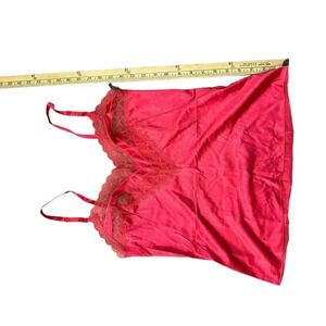 Vanity Fair Lingerie Tank Top Lace Trim Heartshape Adjustable Straps Red Size 34