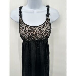 Vanity Fair Nightgown Vintage Womens Size 34 Black Lace Bust Bow Detail Layered