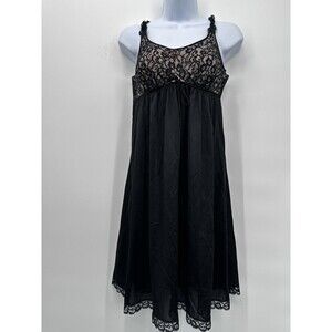 Vanity Fair Nightgown Vintage Womens Size 34 Black Lace Bust Bow Detail Layered baby doll slip on dress cottage regency