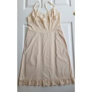 Vanity Fair Peach Lingerie Slip Dress sz 34 adjustable straps lace trim vintage