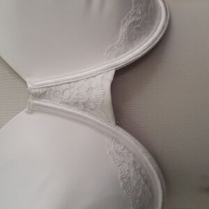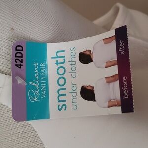 Vanity Fair Radiant Collection Women’s Full Figure Lightly Lined Smoothing Underwire Bra, Style 76528. This new with tags bra is a size 42DD. It is white in color. Our Vanity Fair Radiant Collection Full Figure Lightly Lined Smoothing Underwire Bra features 4-way stretch fabric that smooths sides and back for a perfect silhouette. The lightly lined pads provide modesty and support without adding extra volume. Full coverage cups provide a confident fit - no spilling out. The clean finished neckline looks smooth under all your clothes. This smoothing bra is designed with back adjust, stay-in-place straps to keep you feeling comfortable and looking flawless. The no poke underwire provides support and comfort all day. Beautiful lace at the center front adds a flirty touch while remaining smooth under clothes. You'll love the Vanity Fair Radiant Collection, Lightly Lined Smoothing Underwire Bra.