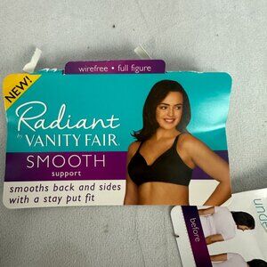 Enjoy unmatched comfort and support with the Vanity Fair Radiant Smooth Bra. Featuring wirefree design and a full figure fit, it smooths the back and sides while staying secure under clothes. Its seamless construction and soft fabric ensure all-day comfort, elevating your wardrobe essentials.