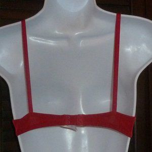 Red color. Underwire support. Thin lining (not padded, not like a pushup).