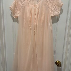 Delicate sheer chemise with lace detailing. Soft blush color for a feminine touch. Ideal for a cozy night in.2 pieces