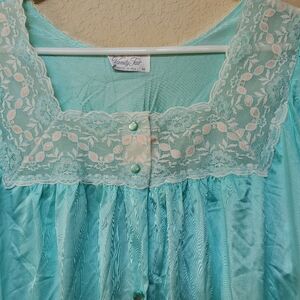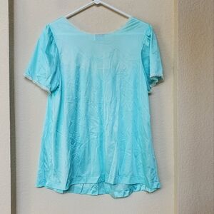 Elegant aqua blouse with lace trim. Perfect for a feminine look