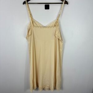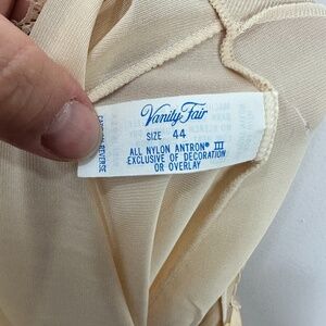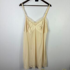 Vanity Fair Slip Dress Women 44 Beige Nylon Lace Trim Vintage Coquette Retro
