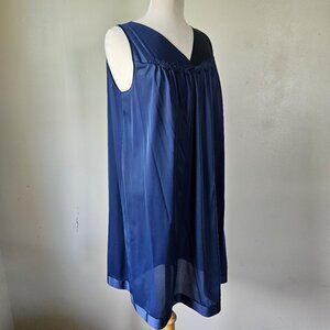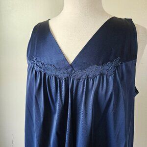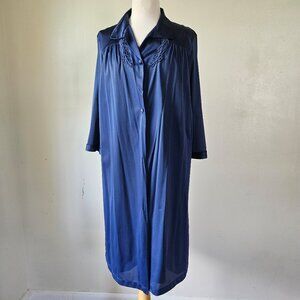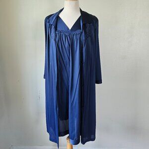 Vanity Fair Vintage 70s Navy Blue Nylon 2 Piece Nightgown Robe Peignoir Set L