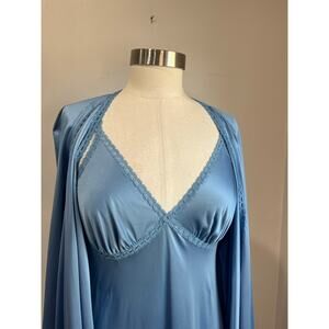 Vanity Fair Vintage Blue Nylon Nightgown & Robe Set Long Maxi Size 34