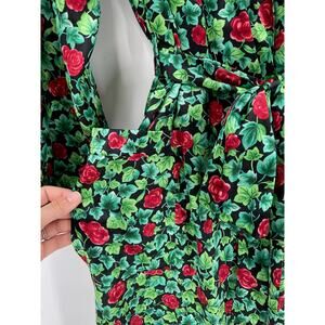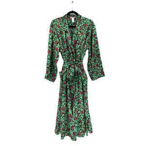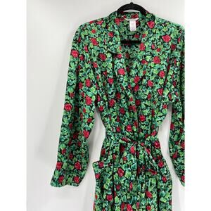 Vanity Fair Vintage Floral Rose Print Long Sleeve Belted Wrap Robe Size M