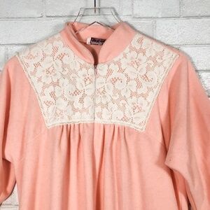 Vanity Fair Vintage House Coat Robe Floral Pink Ivory Half Zip Micro-Fleece. Made in U.S.A. Vintage size runs smaller.