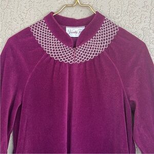Vanity Fair Vintage Long Sleeve Dacron Velour Zip Front Gown House Coat Robe