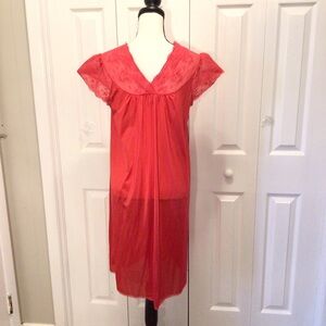 Vanity Fair Vintage Red Short Sleeve Nightgown Size 34