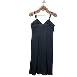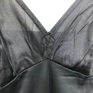 Vanity Fair Vintage Slip Black 1970s Midi Length Embroidered Flower V Neck 36 TT