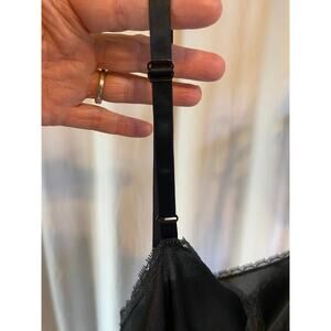 Vanity Fair Vintage Slip Dress Black Silky Delicate Lace Trim Midi Size 34L