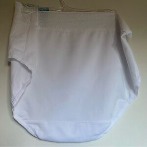 Experience the comfort of Vanity Fair's white full-coverage briefs, crafted from a smooth, solid fabric. These bottoms feature elastic leg openings and a waistband for a secure fit, making them an essential addition to your wardrobe.