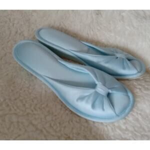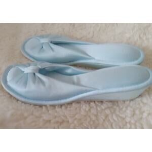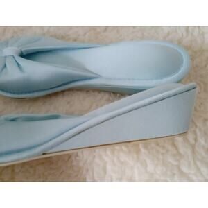 Vanity Fair Women's Blue Nylon House Shoes Slippers with Wedge Heels Small 5-6