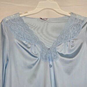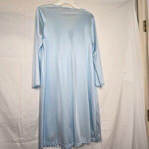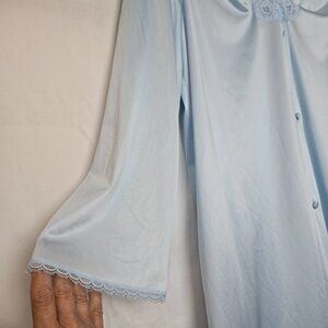 Vanity Fair Women's Blue Nylon Robe Lace Button Up Long Sleeve Pocket Size M