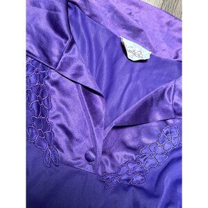Vanity Fair Womens L Purple Satin Nightgown House Coat Robe Button Front