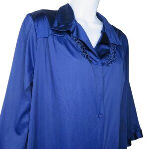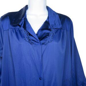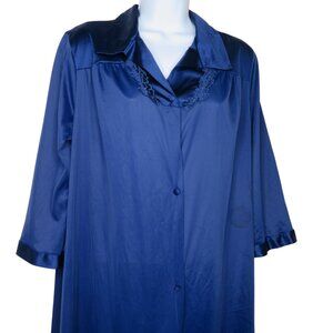 Vanity Fair Womens Navy Blue Button-Down Nightgown Robe M Nylon Embroidered