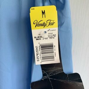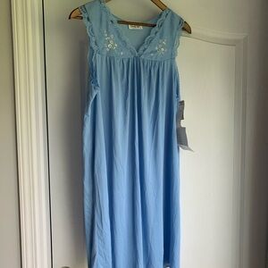 Charming blue vintage deadstock nightgown by Vanity Fair. Features delicate lace accents. Size medium. Embroidered floral details. Measurements in images. Made in the USA