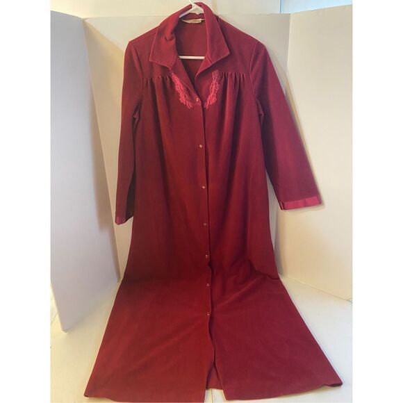Vanity Fair outlet maxi robe vtg USA snap buttons small S deep red Dacron Poly
