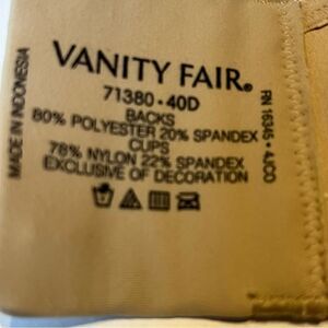 Vanity Fair Bra Nude 40D No Underwire Lightly padded.