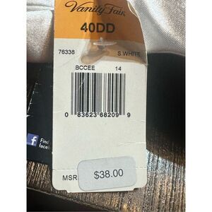 Vanity Fair NWT size 40DD white Full Figure Underwire Bra Illumination