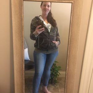 Vanity hooded jacket with zipper. Camo print. Size L.