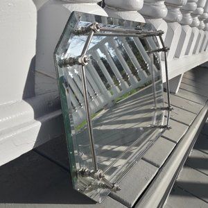 Vanity Mirror Vintage Trey Silver Handles Octagon Shape Mirrored Tray Art Deco
