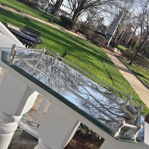 Vanity Mirror Vintage Tray with Silver Handles Handle Rail Octagon Shaped Mirrored Vanity Tray for Bathroom or Bedroom Perfume or Cosmetics Holder Gorgeous Retro Hollywood Regency Mid Century Modern Art Deco Wonderful Gift idea for her. Felt covered bottom. Mirror and handle rail in good vintage condition with a minor tiny scratch near center and tiny smudge area and no chips nor cracks looks good overall. Gift for her for mom daughter sister friend. Measurement: 17 inches long X 10 1/2 inches wide X 1 1/4 inches tall.