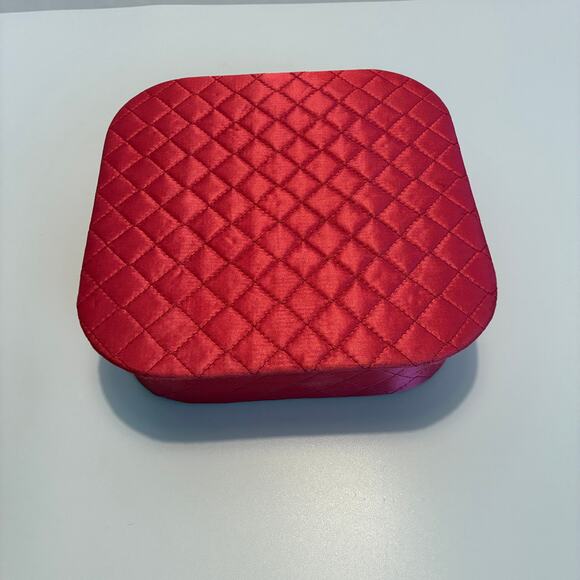Vanity Organizer MCM Vintage Pink Quilted Satin Square Hinged Lid 8” sq x 2.5” H