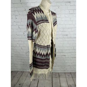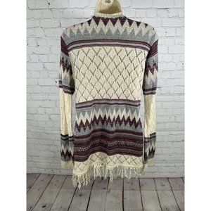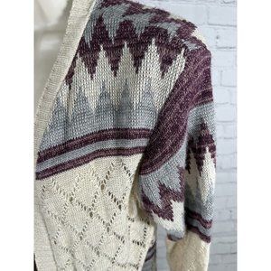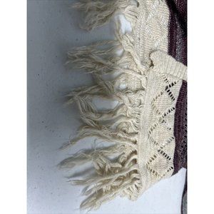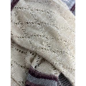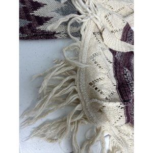 Vanity Purple Beige Semi Sheer Loose Knit Sweater Cardigan W Tassels Women’s L