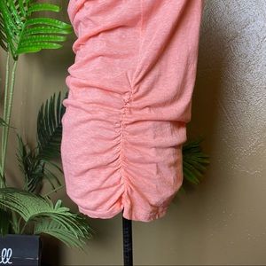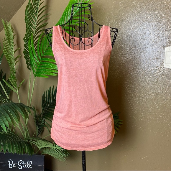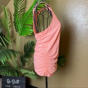 This was probably only worn once. It’s a size small with a rouched detail on the sides and a racerback. It’s very flattering! I accept offers.