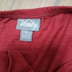 This sleeveless tank top by Vanity showcases a vibrant red hue with a chic ruffled neckline and a halter design. Crafted from a soft, flowy fabric, it offers a comfortable and stylish fit perfect for casual outings.