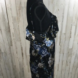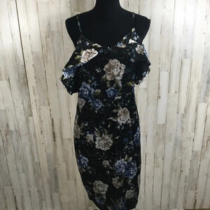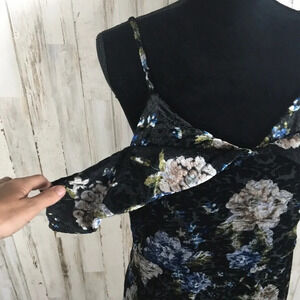 Vanity Room Cold Shoulder Floral Velvet Dress L