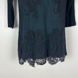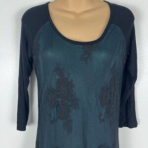Vanity Scoop Neck Black Top sz S Lace Overlay 3/4 Sleeve Rayon Whimsygoth y2k