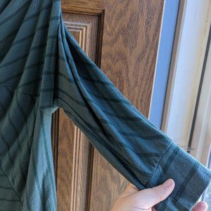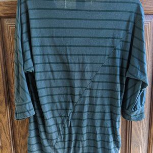 Dark green Vanity cowl neck striped top with ruching on the sides. It is a size XL. Overall good condition, no known stains or other flaws. Please see photos for the items condition.
