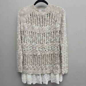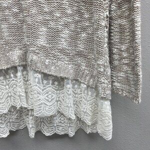 Vanity Sweater Womens Large Beige Cream Open Knit Lace Hem Layered Pullover