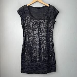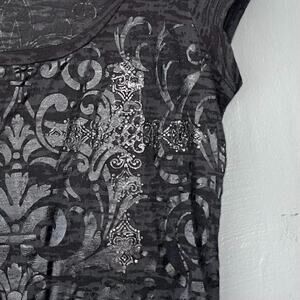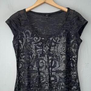 Vanity short sleeve embellished black and gray burnout knit tee shirt top in Great pre-owned condition!